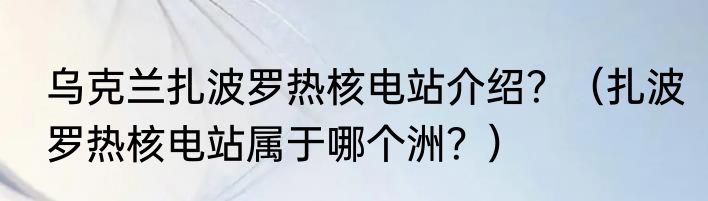 提及乌克兰扎波罗热核电站介绍?(扎波罗热核电站属于哪个洲?)的相关内容,许多人不太了解,来看看小昭的介绍吧!