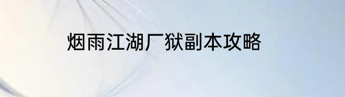 说起烟雨江湖厂狱副本攻略,会有不少人想要了解,那么下面来看看烟雨江湖厂狱副本攻略的有关内容。