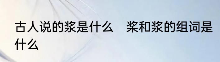 在古籍中,常以水、浆连称,称美酒为“玉液琼浆”,又称粗鄙之人为“引车卖浆之徒”,悲痛不食为“水浆不入口”等。