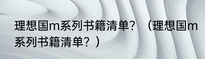 理想国m系列书籍清单?(理想国m系列书籍清单?)