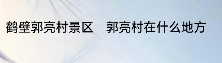 鹤壁郭亮村景区?