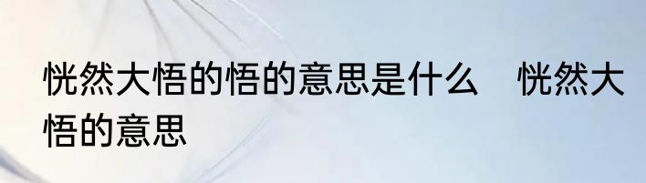 恍然大悟的悟的意思是什么 恍然大悟的意思