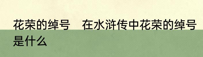 花荣的绰号 在水浒传中花荣的绰号是什么