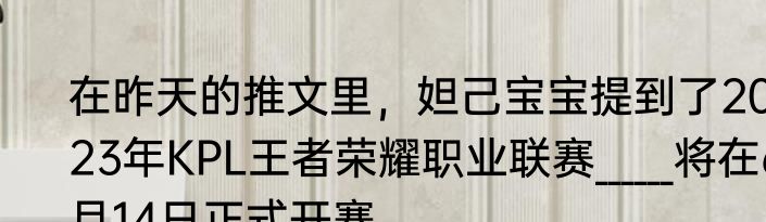 在昨天的推文里,妲己宝宝提到了2023年KPL王者荣耀职业联赛______将在6月14日正式开赛。
