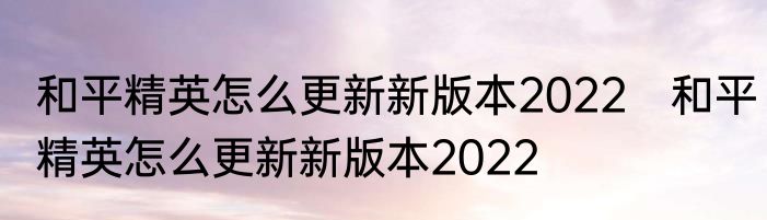 和平精英怎么更新新版本2022?