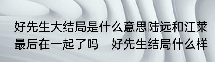 好先生大结局是什么意思陆远和江莱最后在一起了吗?