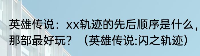 英雄传说:xx轨迹的先后顺序是什么,那部最好玩?(英雄传说:闪之轨迹)