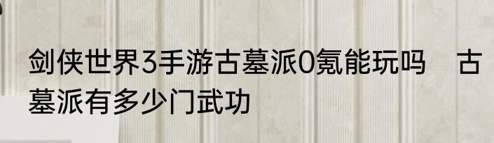 剑侠世界3手游古墓派0氪能玩吗 古墓派有多少门武功