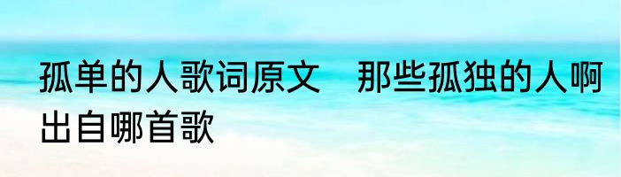 孤单的人歌词原文 那些孤独的人啊出自哪首歌