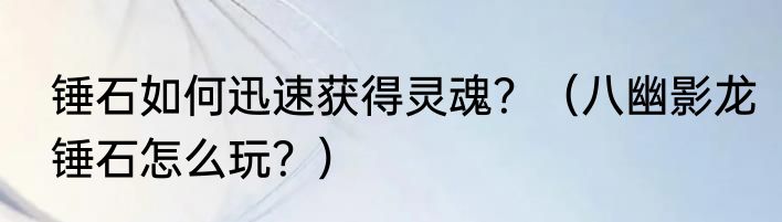 提及锤石如何迅速获得灵魂?(八幽影龙锤石怎么玩?)的相关内容,许多人不太了解,来看看小刚的介绍吧!
