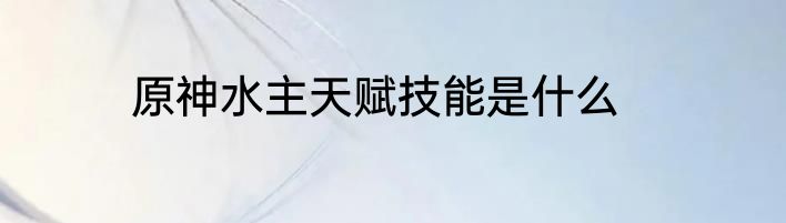 说起原神水主天赋技能是什么,会有不少人想要了解,那么下面来看看原神水主天赋技能是什么的有关内容。