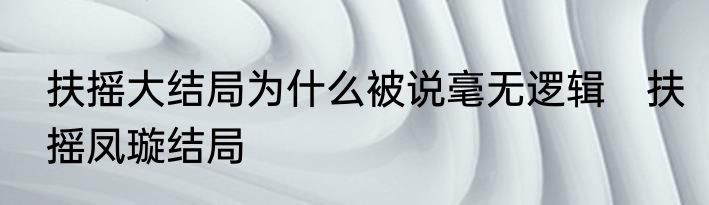 扶摇大结局为什么被说毫无逻辑 扶摇凤璇结局