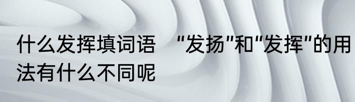 什么发挥填词语 “发扬”和“发挥”的用法有什么不同呢
