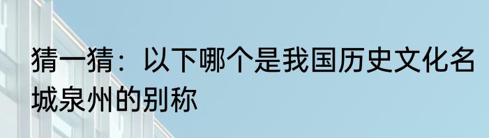说起猜一猜:以下哪个是我国历史文化名城泉州的别称,会有不少人想要了解,那么下面来看看猜一猜:以下哪个是我国历史文化名城泉州的别称的有关内容。