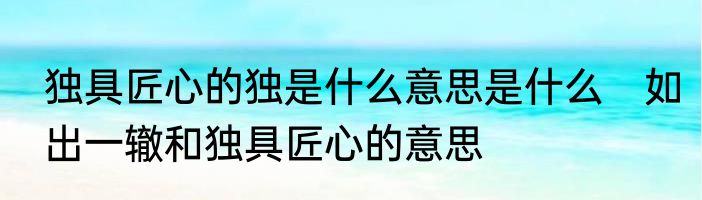 独具匠心的独是什么意思是什么 如出一辙和独具匠心的意思