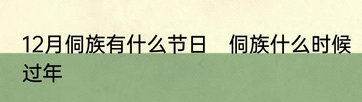 12月侗族有什么节日?
