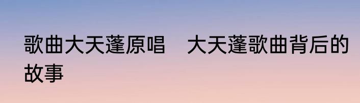 歌曲大天蓬原唱 大天蓬歌曲背后的故事