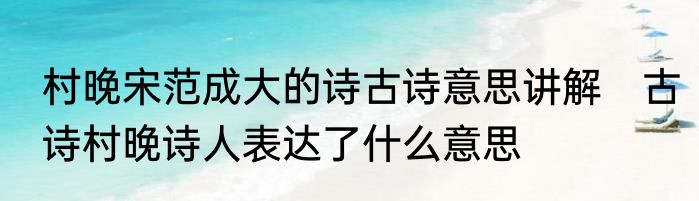 村晚宋范成大的诗古诗意思讲解?