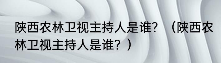 陕西农林卫视主持人是谁?(陕西农林卫视主持人是谁?)