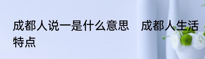 成都人说一是什么意思 成都人生活特点