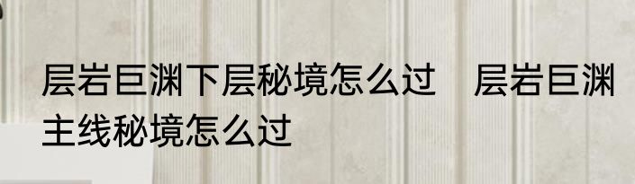 层岩巨渊下层秘境怎么过 层岩巨渊主线秘境怎么过