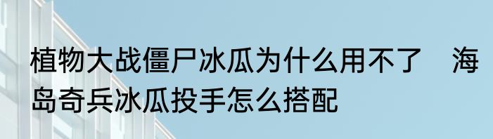 植物大战僵尸冰瓜为什么用不了 海岛奇兵冰瓜投手怎么搭配
