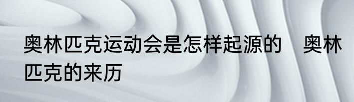 奥林匹克运动会是怎样起源的 奥林匹克的来历