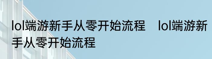 lol端游新手从零开始流程 lol端游新手从零开始流程