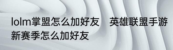 lolm掌盟怎么加好友 英雄联盟手游新赛季怎么加好友