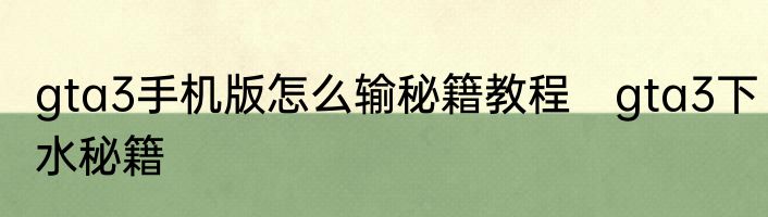 gta3手机版怎么输秘籍教程 gta3下水秘籍
