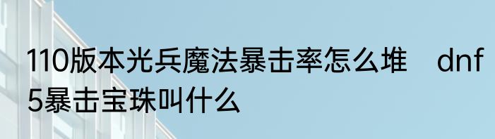 110版本光兵魔法暴击率怎么堆 dnf5暴击宝珠叫什么