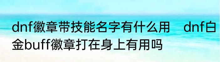 dnf徽章带技能名字有什么用 dnf白金buff徽章打在身上有用吗