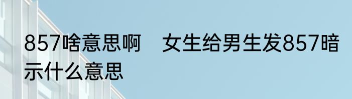 由此,857三个数字合起来所代表的意思是分手,所以如果你的女朋友对你说857就是要和你分手,不愿意在和你继续走下去了。