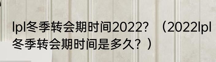lpl冬季转会期时间2022?(2022lpl冬季转会期时间是多久?)