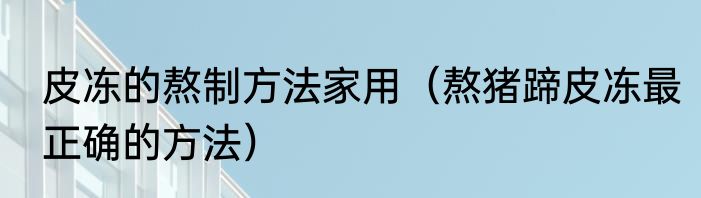 皮冻的熬制方法家用(熬猪蹄皮冻最正确的方法)