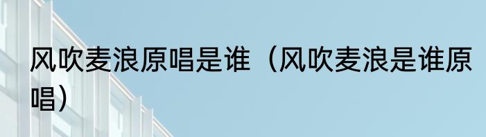 风吹麦浪原唱是谁(风吹麦浪是谁原唱)