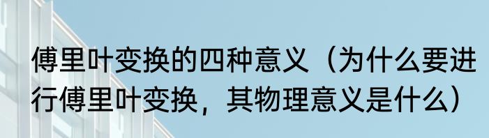 傅里叶变换的四种意义(为什么要进行傅里叶变换,其物理意义是什么)