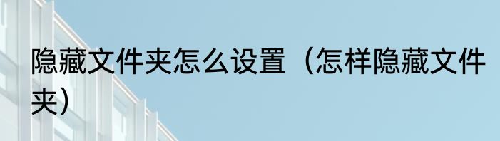 隐藏文件夹怎么设置(怎样隐藏文件夹)