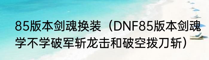 85版本剑魂换装(DNF85版本剑魂学不学破军斩龙击和破空拨刀斩)