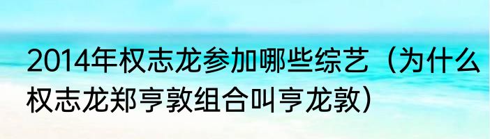 2014年权志龙参加哪些综艺(为什么权志龙郑亨敦组合叫亨龙敦)