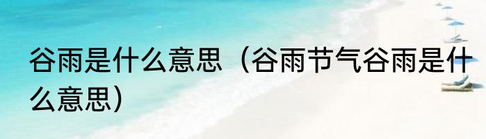 谷雨是什么意思?