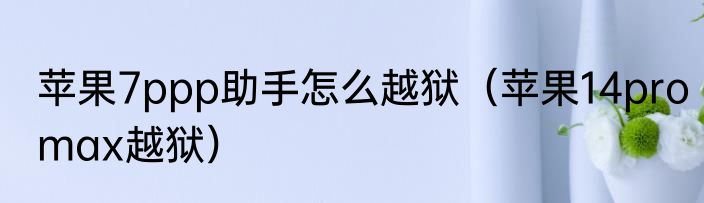 苹果7ppp助手怎么越狱(苹果14promax越狱)