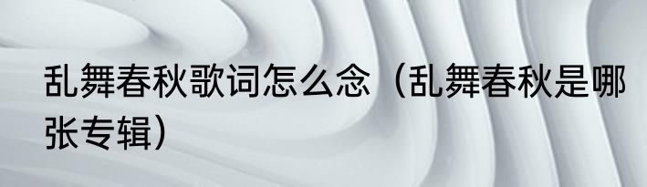 乱舞春秋歌词怎么念(乱舞春秋是哪张专辑)