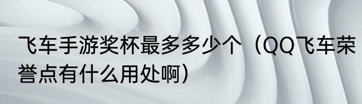 飞车手游奖杯最多多少个(QQ飞车荣誉点有什么用处啊)