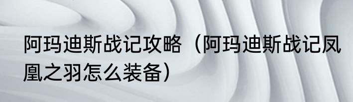 阿玛迪斯战记攻略(阿玛迪斯战记凤凰之羽怎么装备)