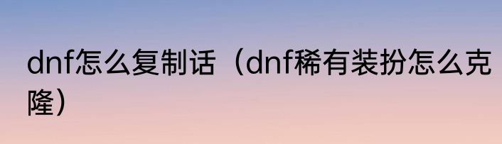 dnf怎么复制话(dnf稀有装扮怎么克隆)