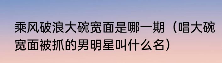 乘风破浪大碗宽面是哪一期(唱大碗宽面被抓的男明星叫什么名)