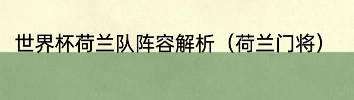 世界杯荷兰队阵容解析(荷兰门将)