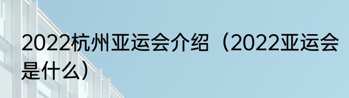 杭州2022年第19届亚运会(The19thAsianGamesHangzhou2022),简称“2022年杭州亚运会”,于2022年9月10日至25日在中国浙江杭州举行。