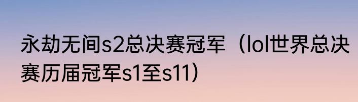 永劫无间s2总决赛冠军(lol世界总决赛历届冠军s1至s11)